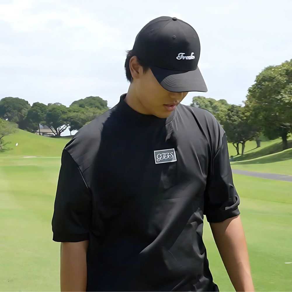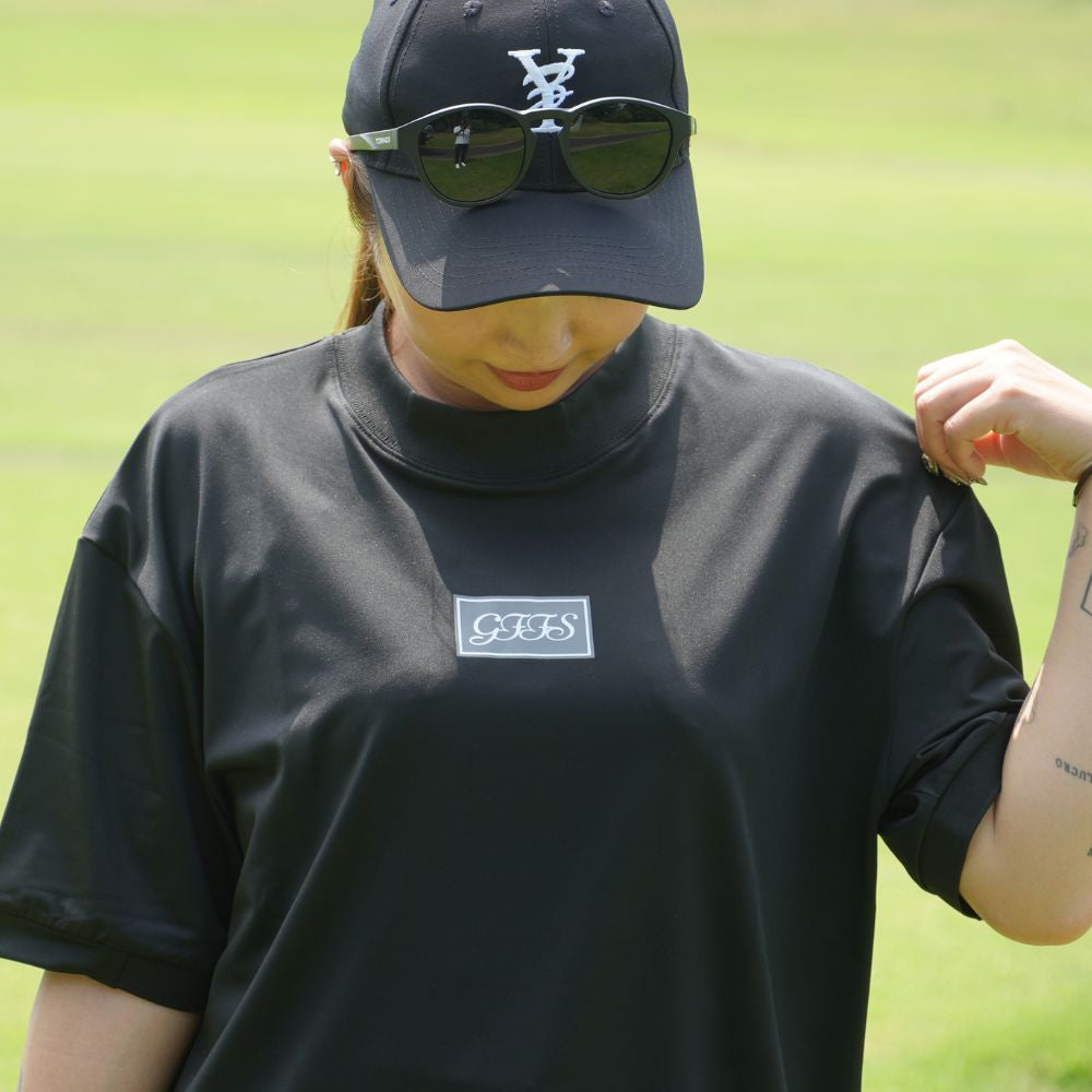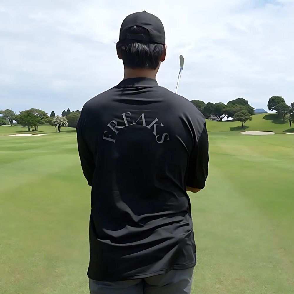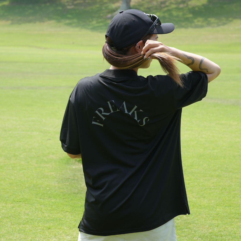This mock neck shirt has a high collar with the "freaks" logo embroidered in the center of the front and "Zip your lips" printed on the back .