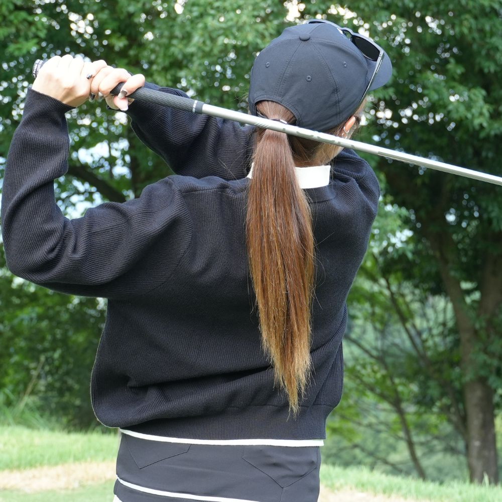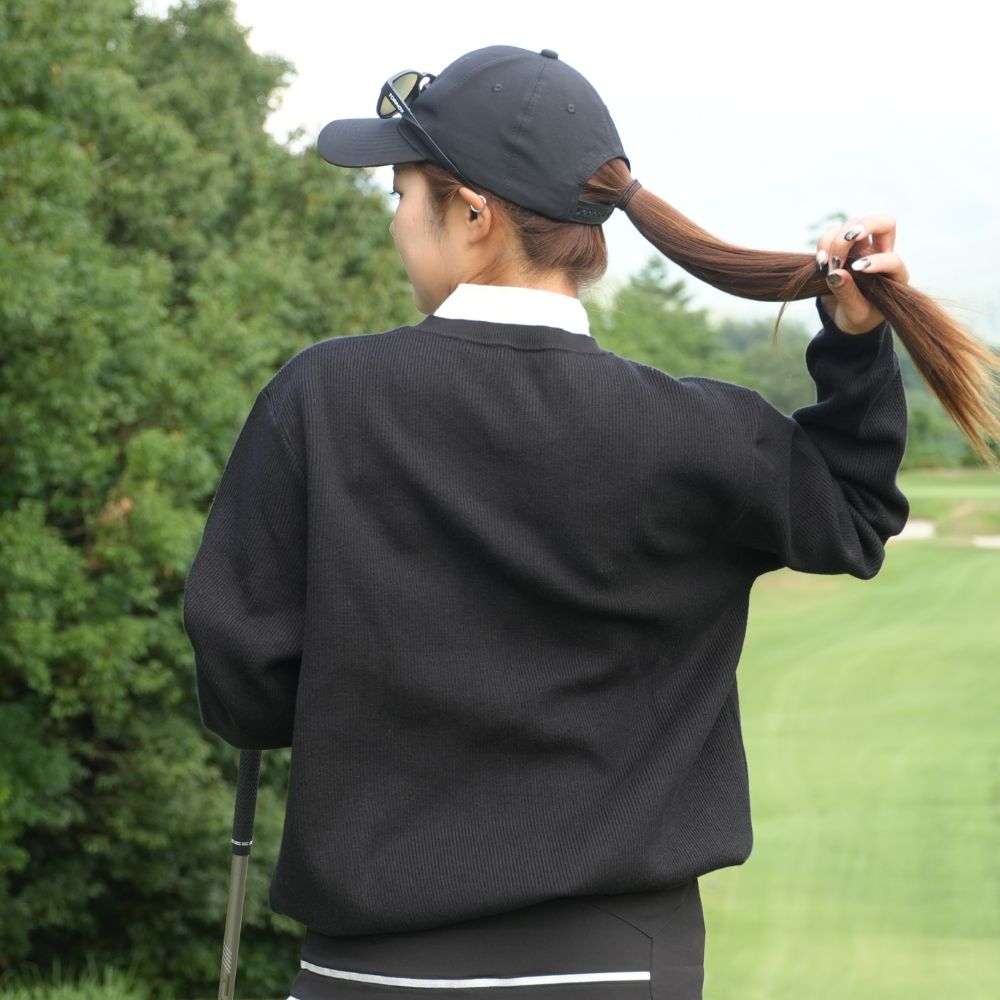 ほどよい厚みと柔らかな編地で、ラウンド中もデイリーも快適に着られます。