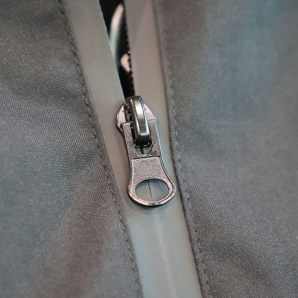 フロントは雨の侵入を抑える止水ジップ仕様。