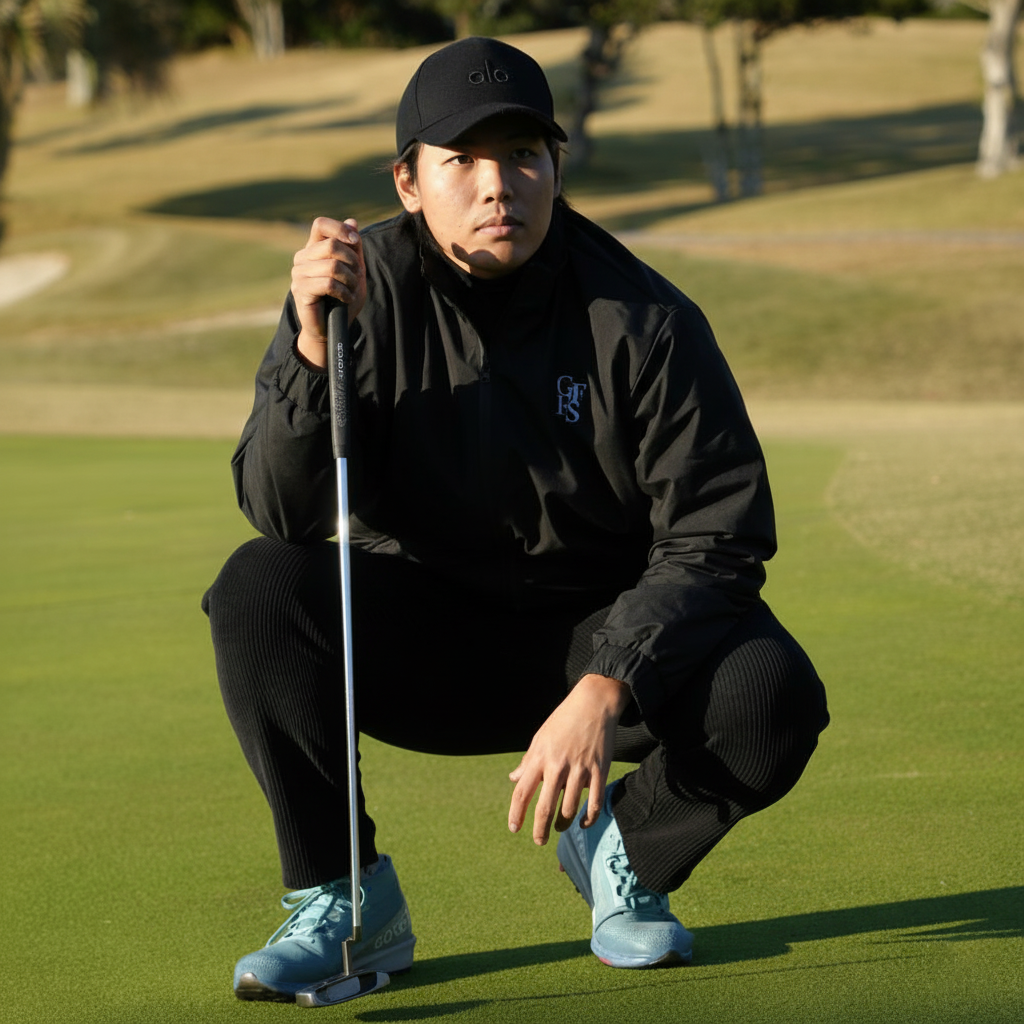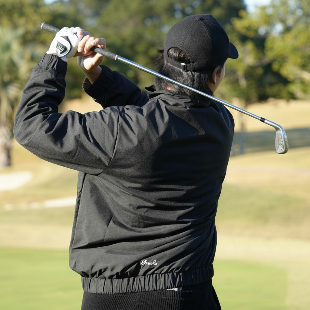 さらっとしたマットな生地感で引っかかりにくく、スイング動作を妨げないストレスフリーな着心地。