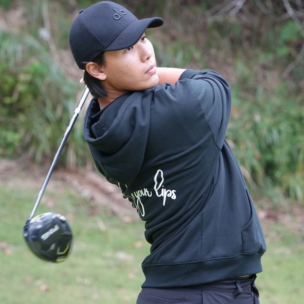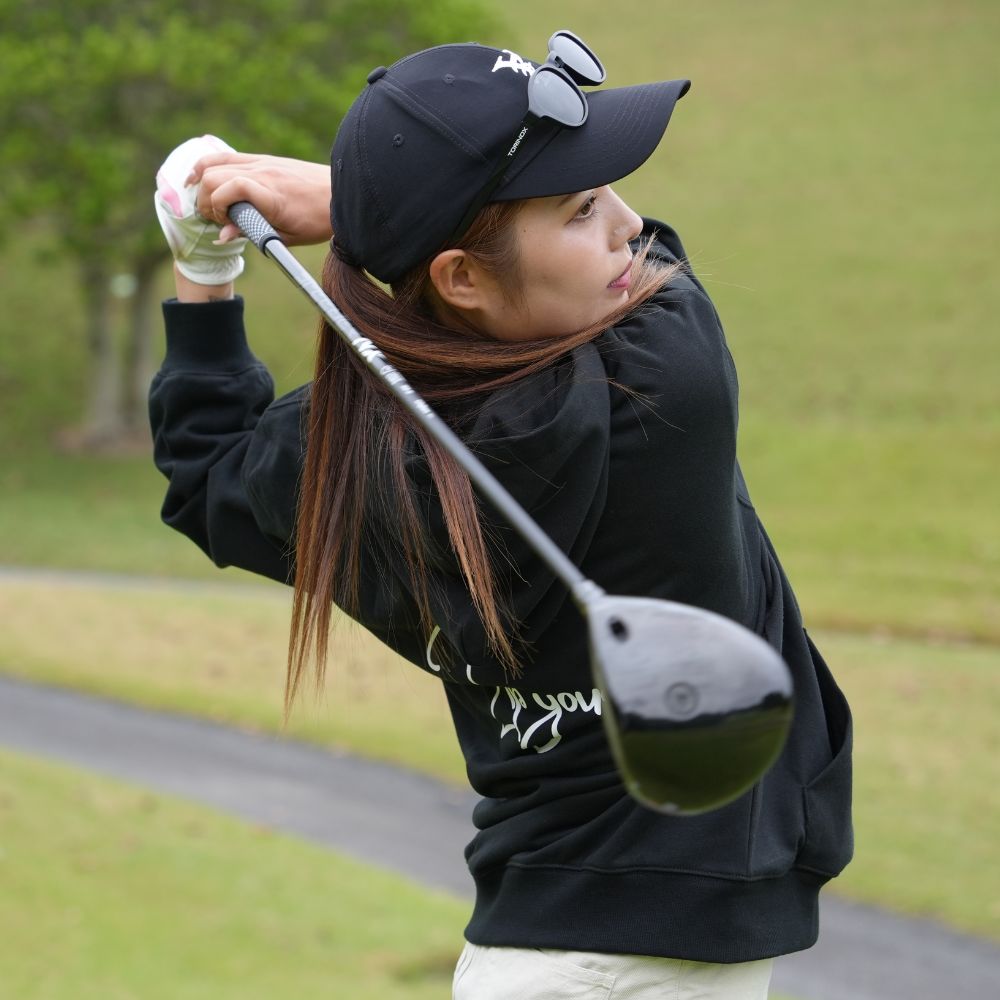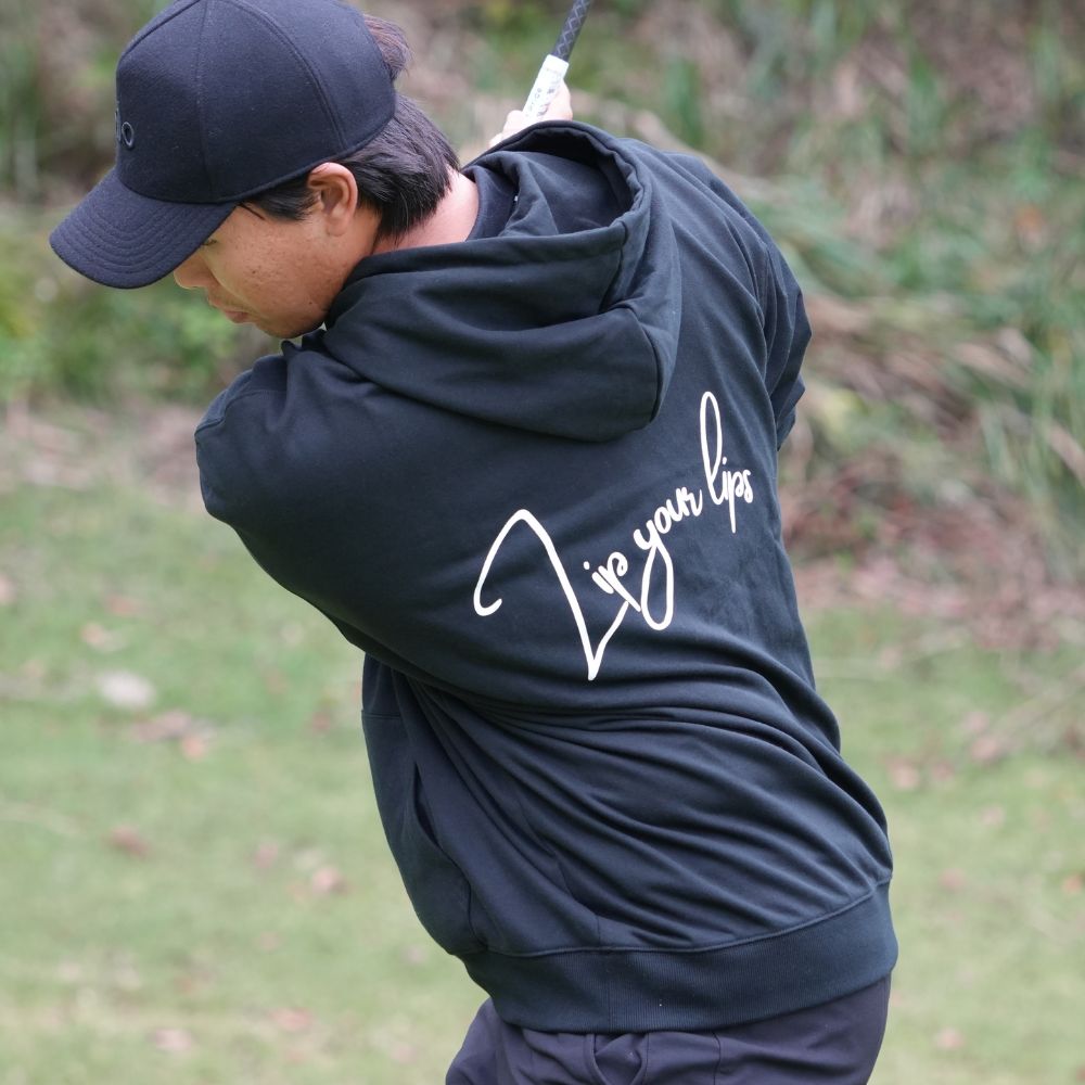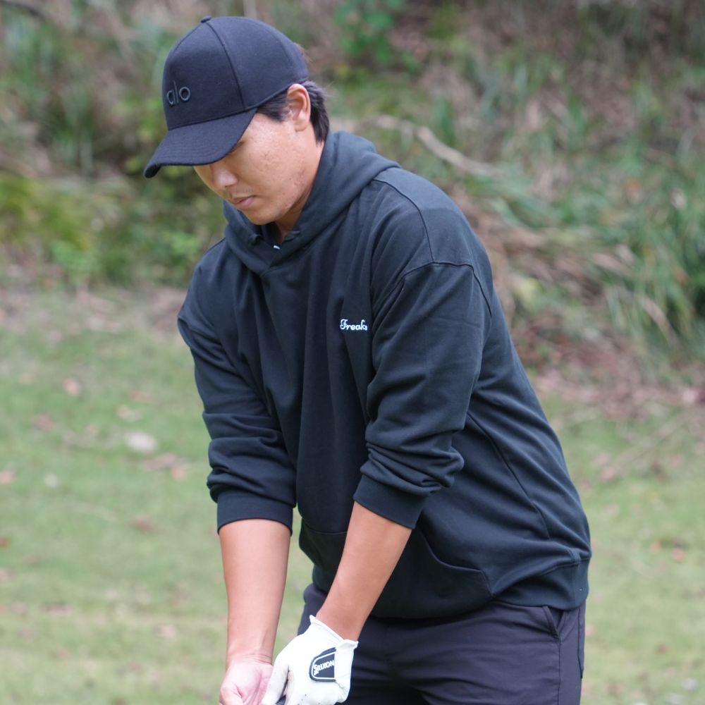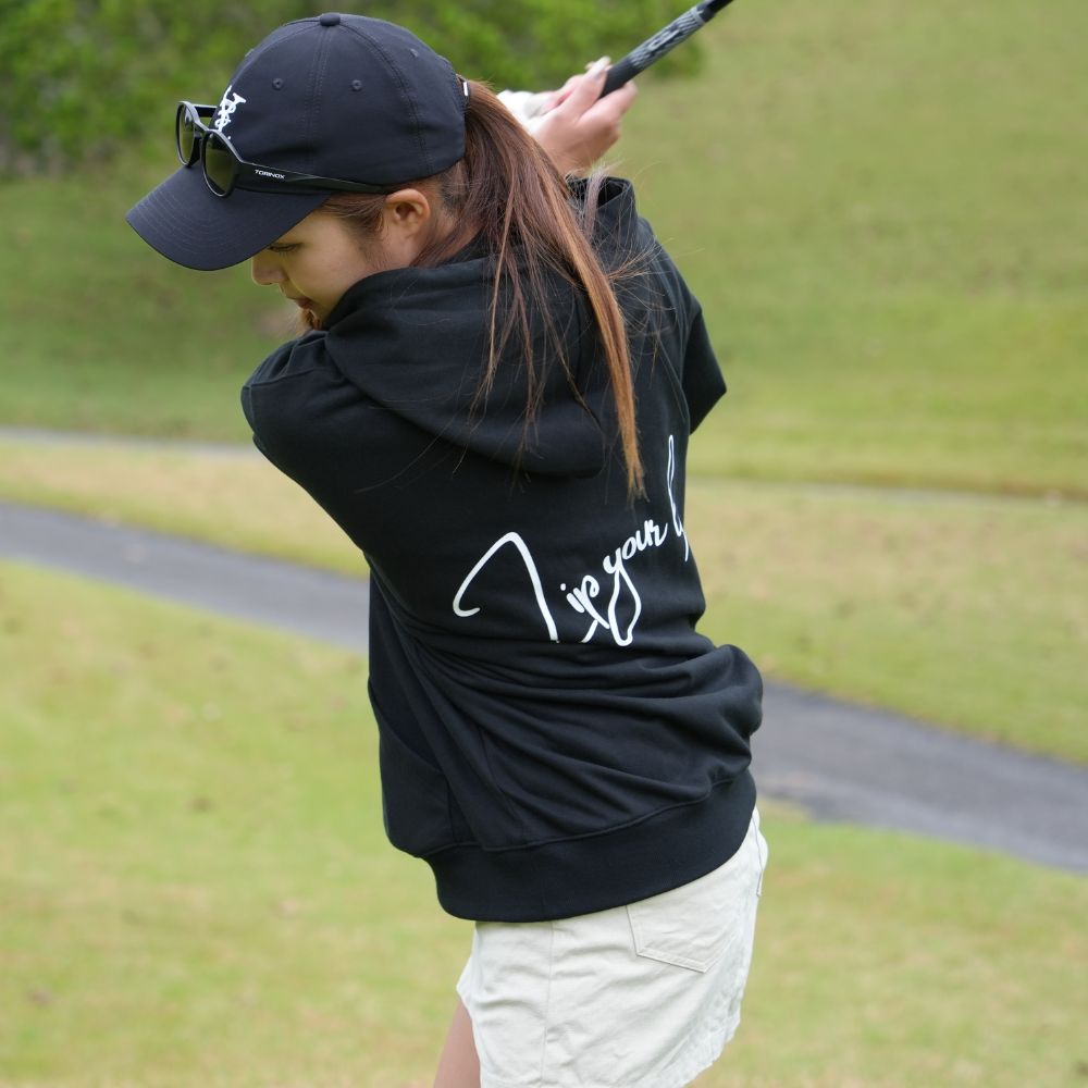 通常のフーディよりも袖丈を若干短く設定しスイングを妨げにくい設計に。
